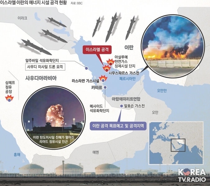 이란과 미국·이스라엘 간의 군사적 충돌 여파가 글로벌 에너지 시장을 직격하고 있다. 카타르 라스라판 산업단지에 이란의 미사일이 떨어지면서 세계 최대 규모의 액화천연가스(LNG) 생산기지 가동이 타격을 받았다.