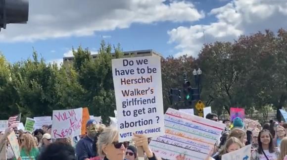 Today’s best protest sign says “Do we have to be Herschel Walker’s girlsfriend to get an abortion?” |