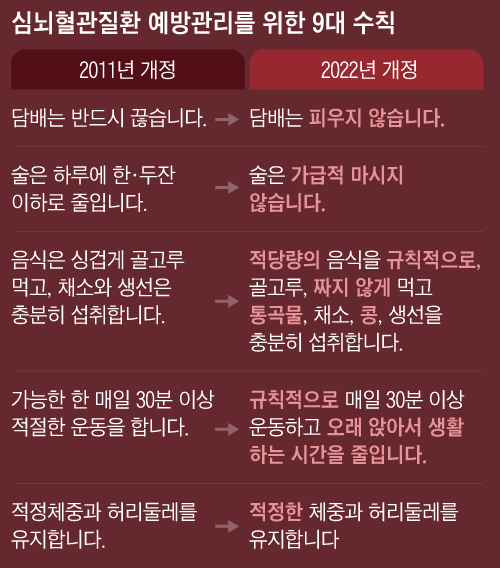 심뇌혈관질환 예방 및 관리를 위한 ‘9대 생활수칙’이 10여년 만에 개정된다.